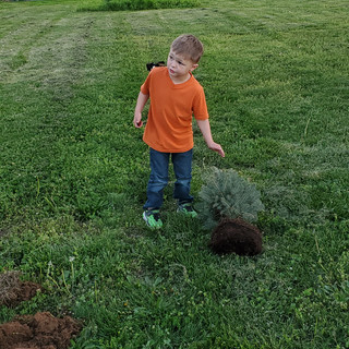 (We planted our little Blue Spruce that we got at Christmas time! The boys helped! They were hauling mulch for the little 🌳 trees! We watered them good and used pecan hulls for mulch! I will explain that another day!)