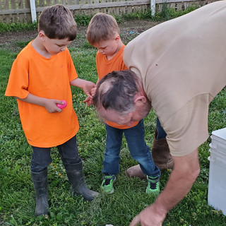 (We kept finding Easter Eggs left from our Easter Egg Hunt! The boys were thrilled!) It was such a nice warm evening. The boys started playing tag in the front yard and I got it on video! I'm going to post it to YouTube later! I also have some baby calf videos to show you! Anyway it was so nice to enjoy our time with the boys and it turned out to be a beautiful evening!