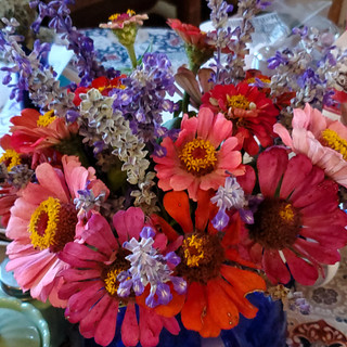 Flowers,flower arrangements,gardening . So yesterday I also harvested the last of my cutting garden! I cut some zinnias, blue š Salvia, flowering vinca, red š¹ roses, and Lantana. Some of these flowers š not everyone would think of as a cutting flower but they actually do very well. So after cutting then I threw them in water because I had to stop and take care of Grandbaby's! When I got back to my flowers I mixed 2 tsp of sugar, 2 tsp of bleach, 2 tsp of lemon š juice with a quart of lukewarm š§ water. I made enough of this mixture to fill my vases. I started stripping the lower leaves off the stems, then cut the stems at an angle. I just put the stems in , in a criss cross pattern in the vase which makes a grid for the rest of the arrangement! I set a pretty table last night š which is fun for me! And if you can't tell I have a deep love for the color blue, especially cobalt blue! So here are some pics! My kitchen proudly presents dinner š½! As an affiliate marketer I do earn an income on anything sold from links on this page. Here are some links to to flowers that are fresh picked from the fields and delivered straight to your door!