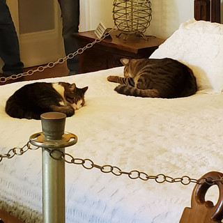 We were not supposed to pick up the cats but I couldn't resist petting them! The cats were so used to it they didn't even move!