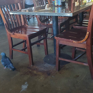 Do you see the pigeons? I decided to throw them a couple of French Fries! It was funny to watch them chase each other. What amazed me was that there were actually pigeons in a restaurant to begin with! Then I saw what happens when you feed them. All of a sudden we were swamped with pigeons! Tom wouldn't let me give them any more fries!